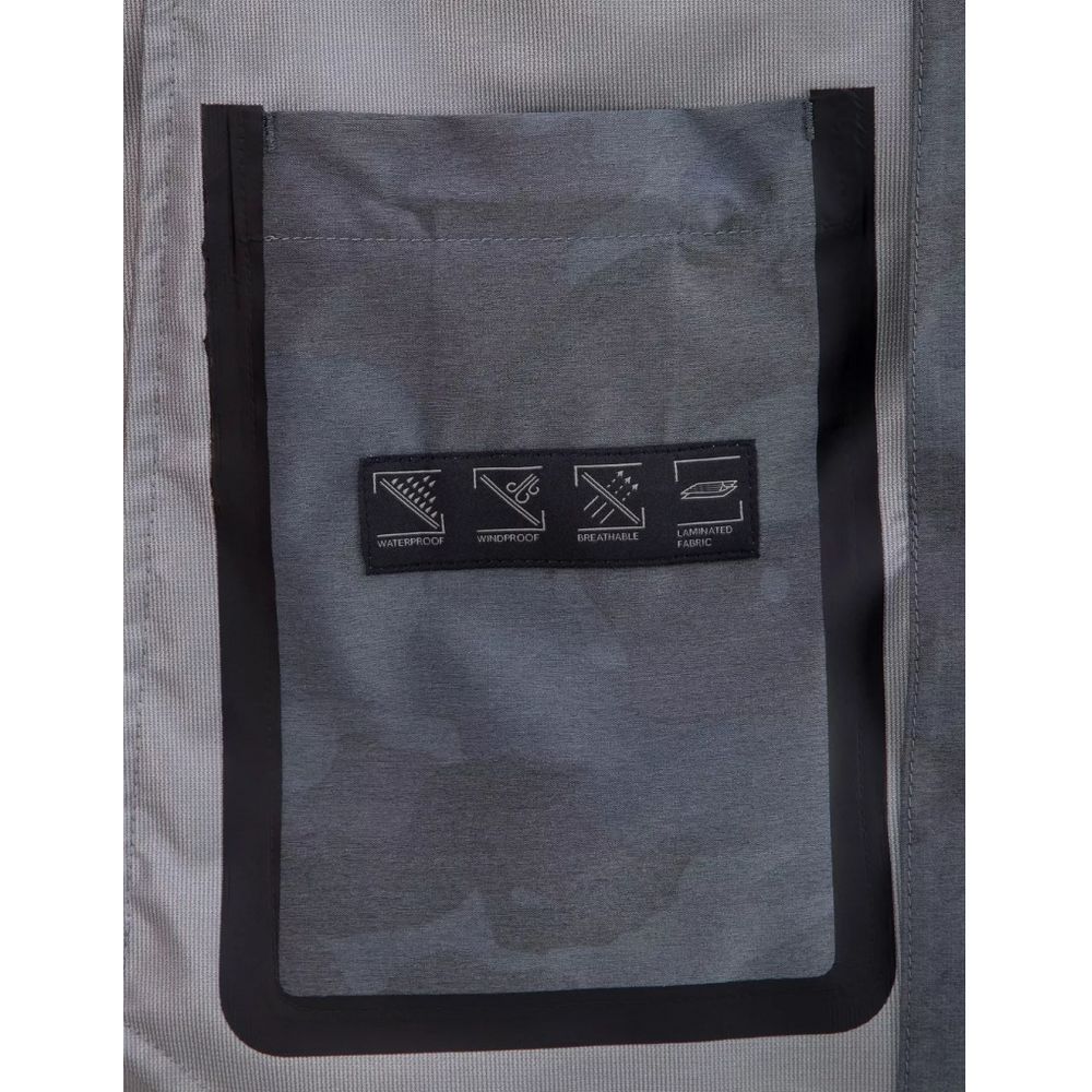 Herno full zip jacket in technical fabric with blue camouflage print, side pockets and hood