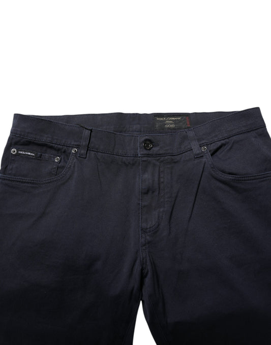 Dolce & Gabbana Dark Blue Cotton Logo Slim Fit Men Denim Jeans
