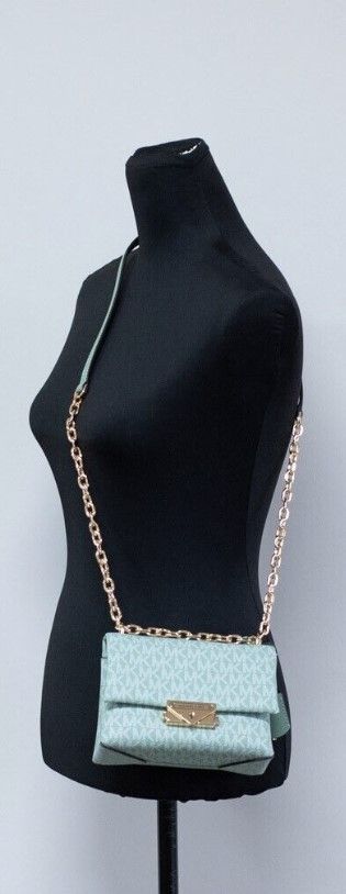 Michael Kors Cece Small Sea Green Signature PVC Convertible Flap Crossbody Bag